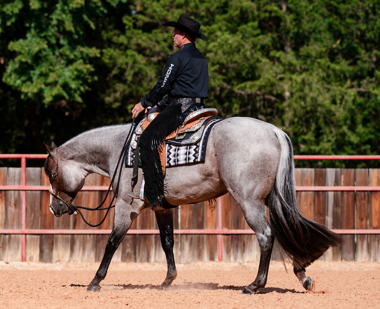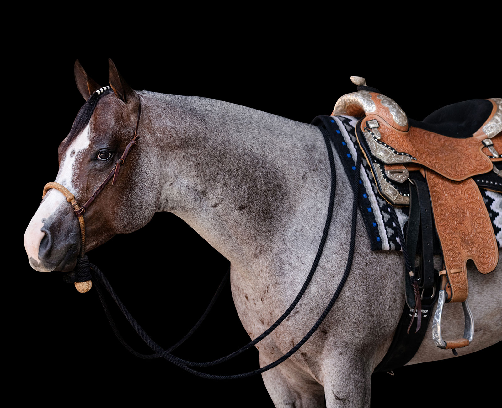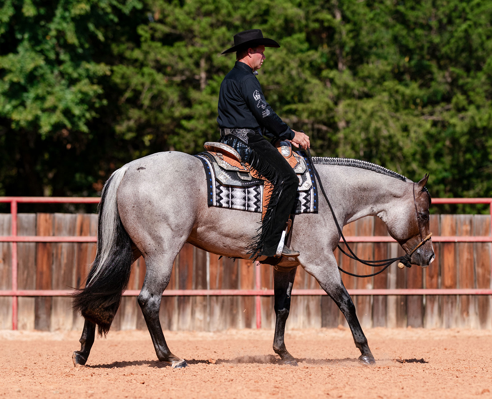 Make Every Stride Count.... The Rock X Whatscookngoodlookin AQHA 15.2H Bay Roan Stallion