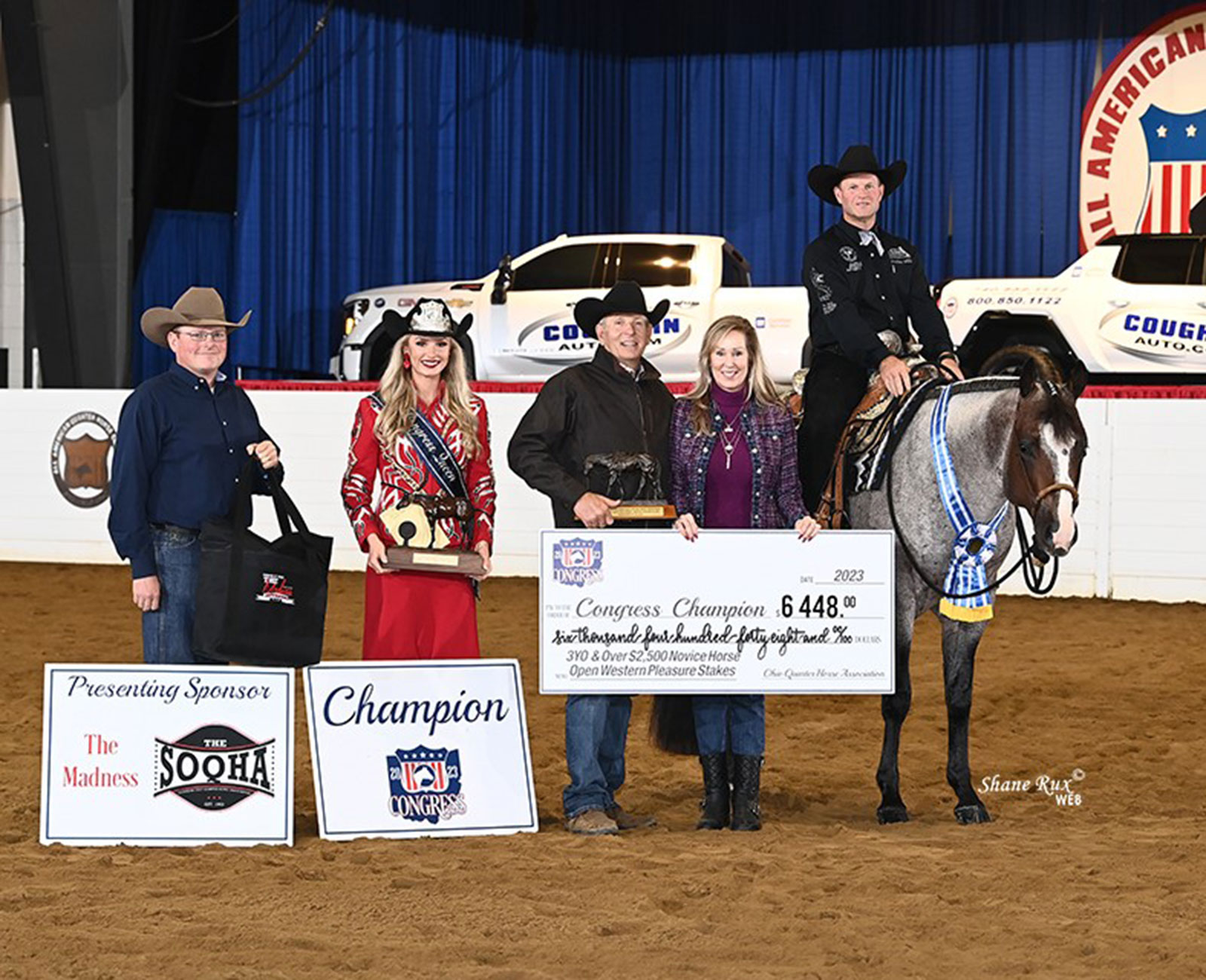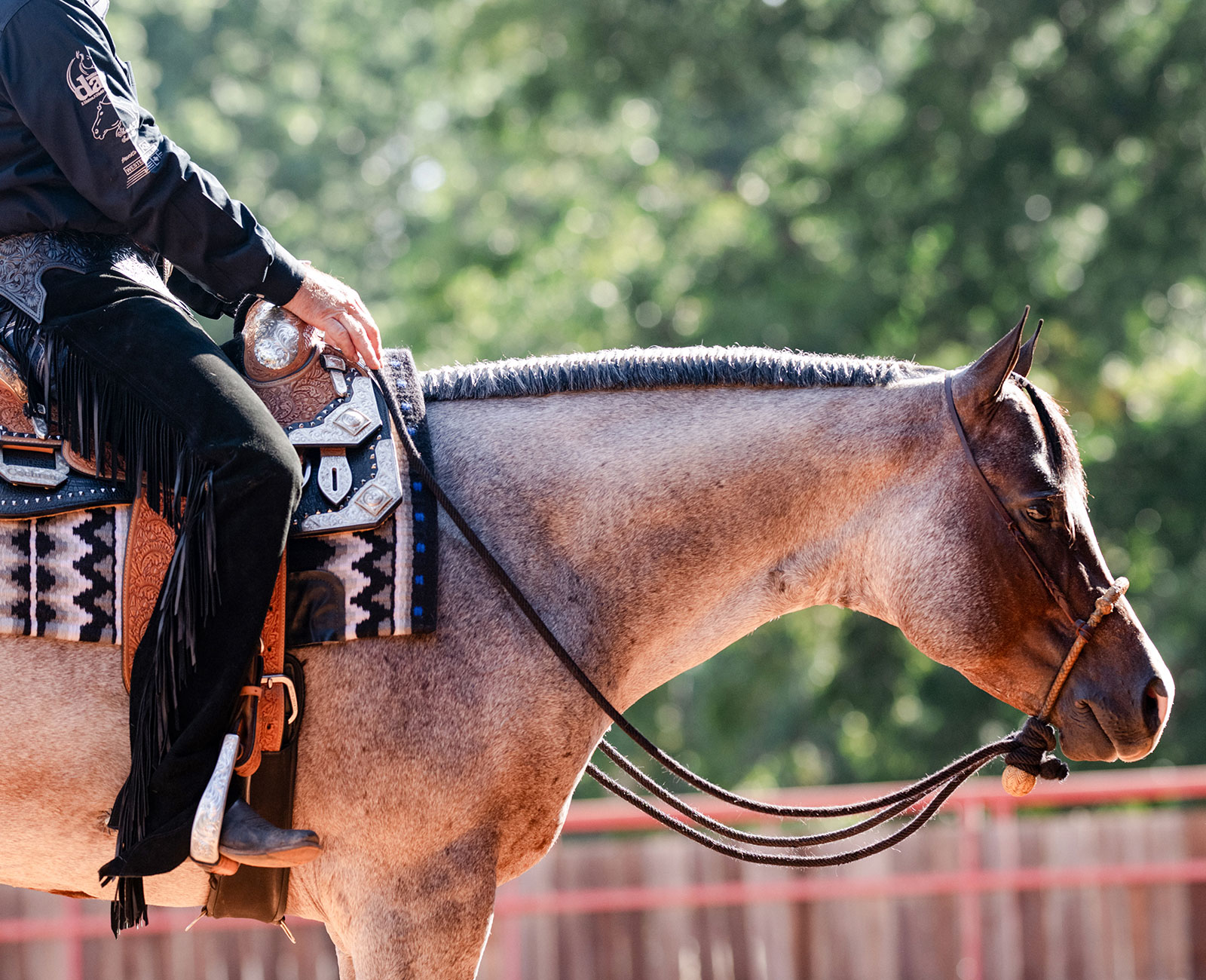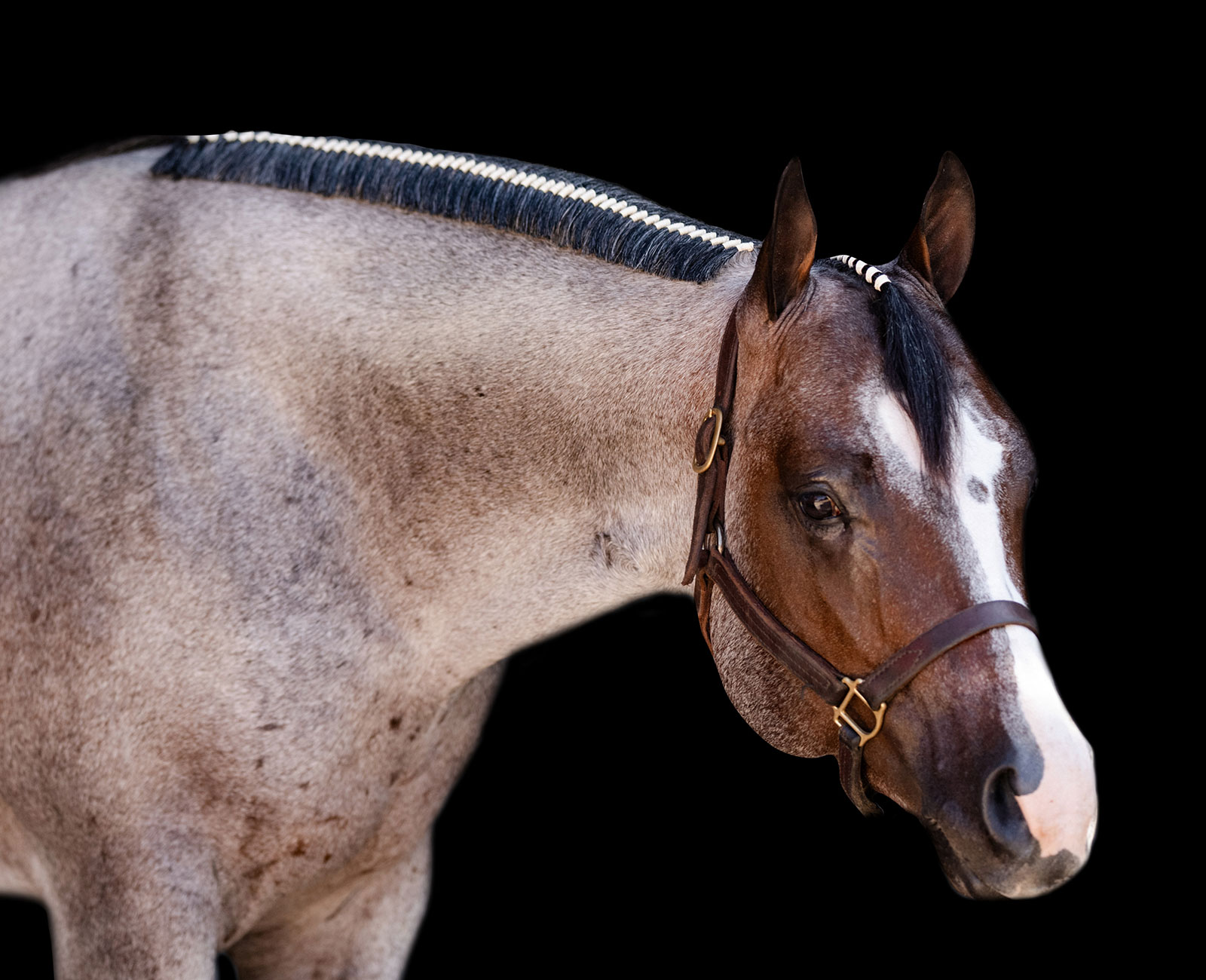 Make Every Stride Count.... The Rock X Whatscookngoodlookin AQHA 15.2H Bay Roan Stallion